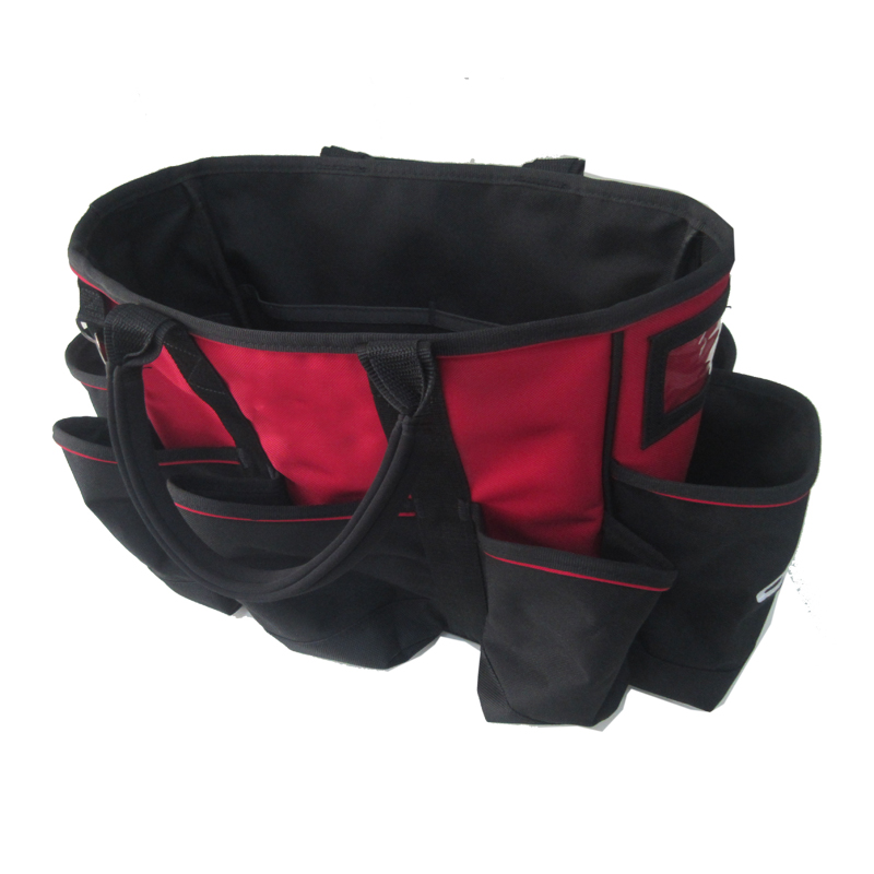 Wide mouth opening makes loading larger tool easy. Big internal pockets hold various tools and accessories such as drills, wrenches, saws, hammers, tape measures, etc. Ideal for electricians, plumbers, etc.