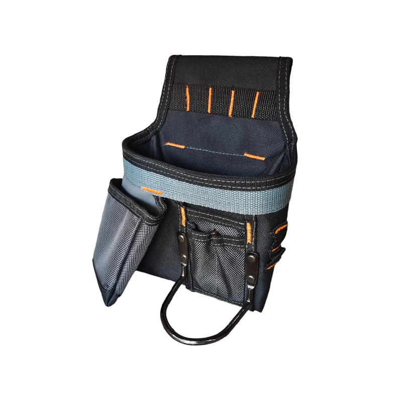 1. The Waist Tool Bag for Carpenters with 1 Big Tool Storage and 4 Small Pockets. 1 big stainless hammer holder and 2 small pockets for electroprobe or carpenter’s pencil.Also you can put screw and nail in the big pockets. Just put what you want carry.